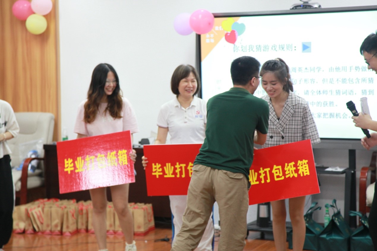 游戏互动,学院领导为毕业生赠送毕业打包纸箱