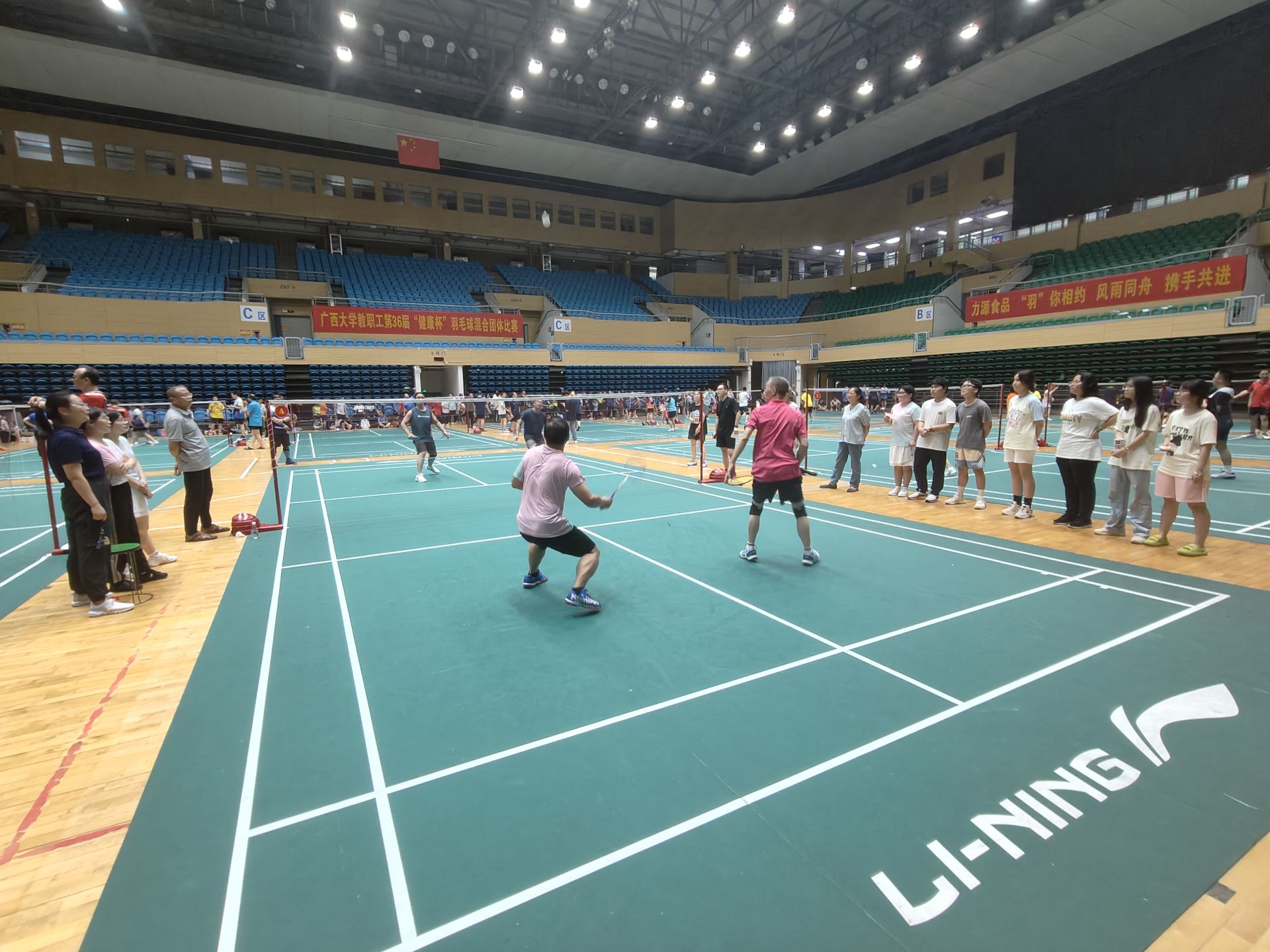 教职工第36届“健康杯”羽毛球混合团体比赛在西体育馆内举行。数信学院分工会精心筹备,积极组织,学院师生上下一心,全情投入比赛。