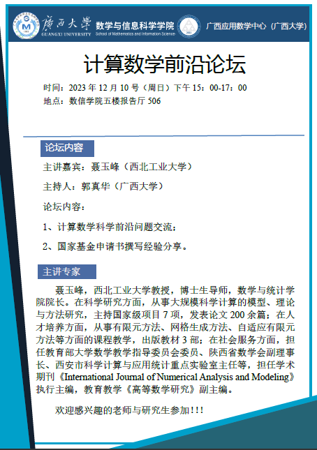 学术报告:计算数学前沿论坛