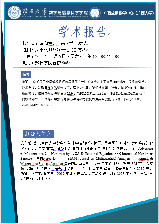 学术报告:关于极限环唯一性的新方法