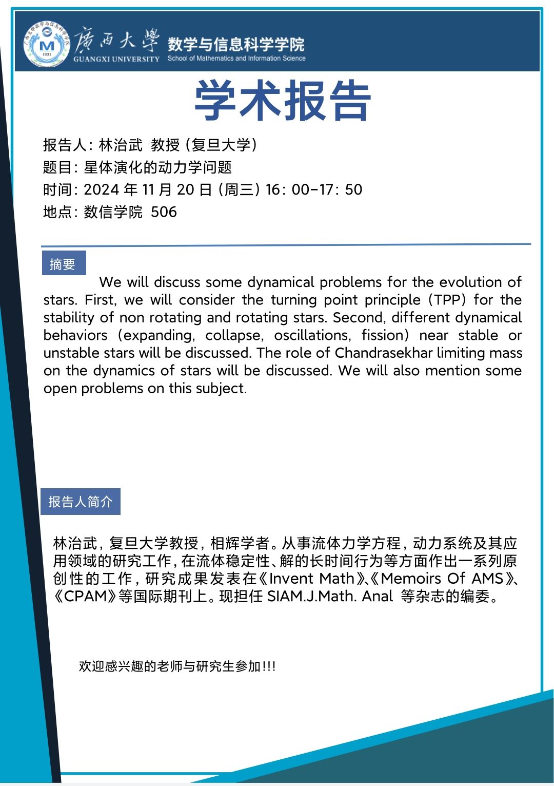 学术报告:星体演化的动力学问题