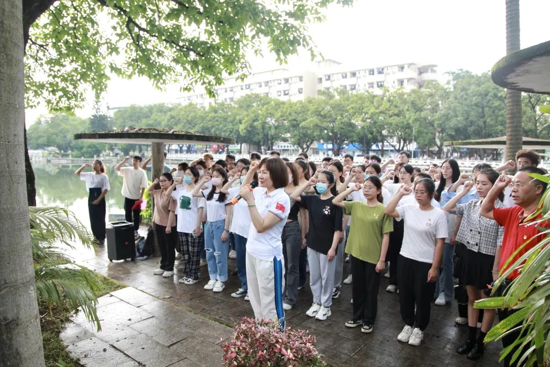 院党委书记黄建荣在讲话中教育引导毕业生党员们增强组织观念,提升政治站位,始终牢记为党育人、为国育才的历史使命,主动接受党组织的教育管理和监督,心存敬畏,严守底线,不负韶华,不负时代,让青春在党和人民最需要的地方绽放绚丽之花。学院党委副书记郭海燕带领全体毕业生党员重温入党誓词。