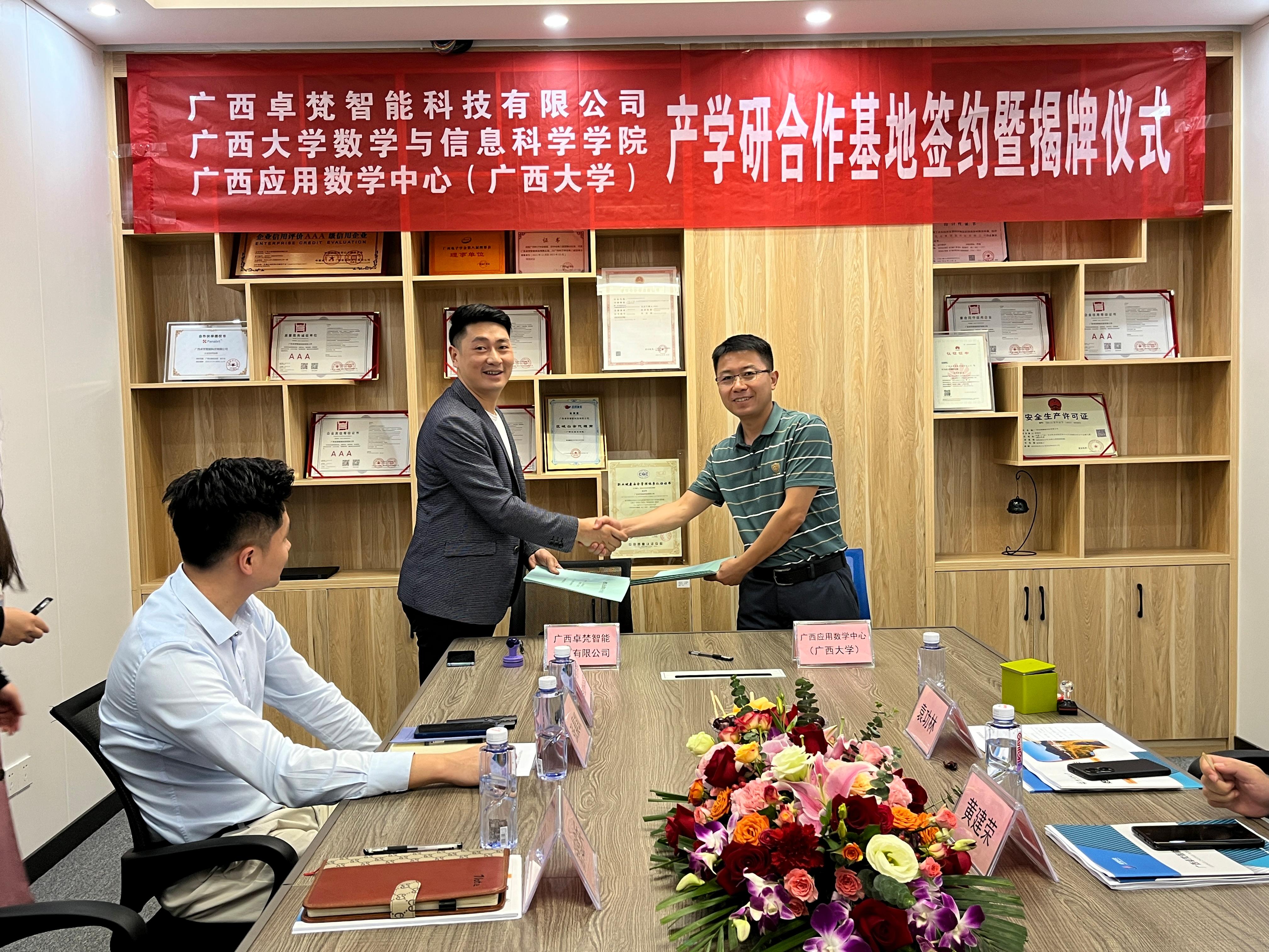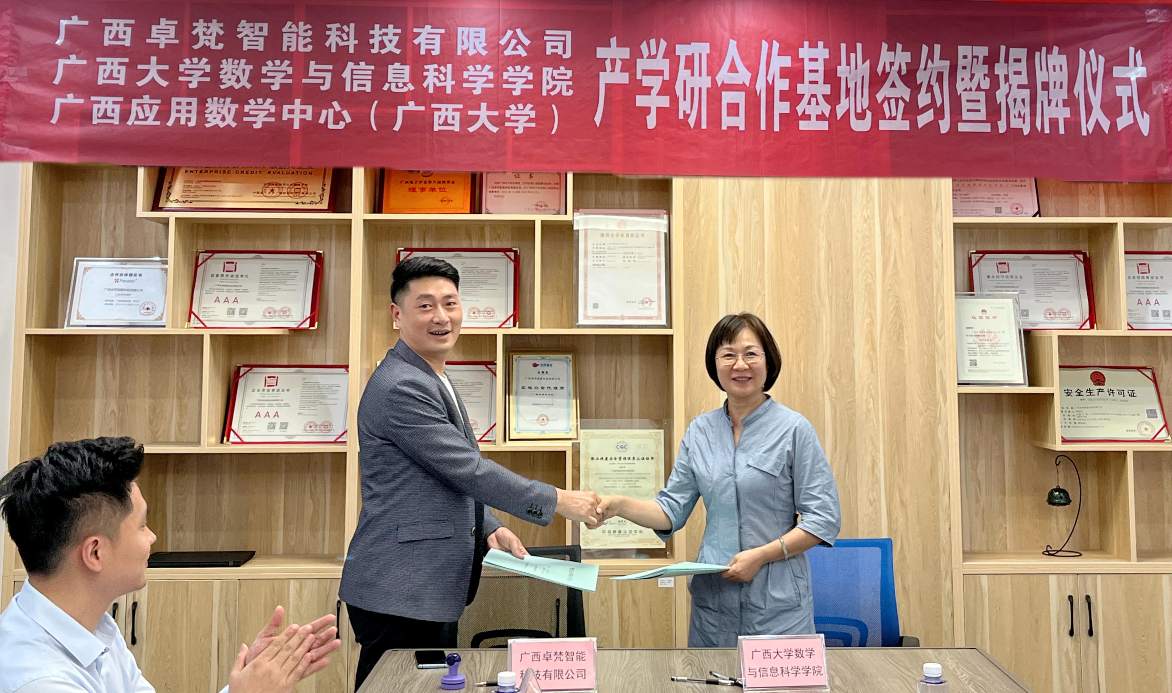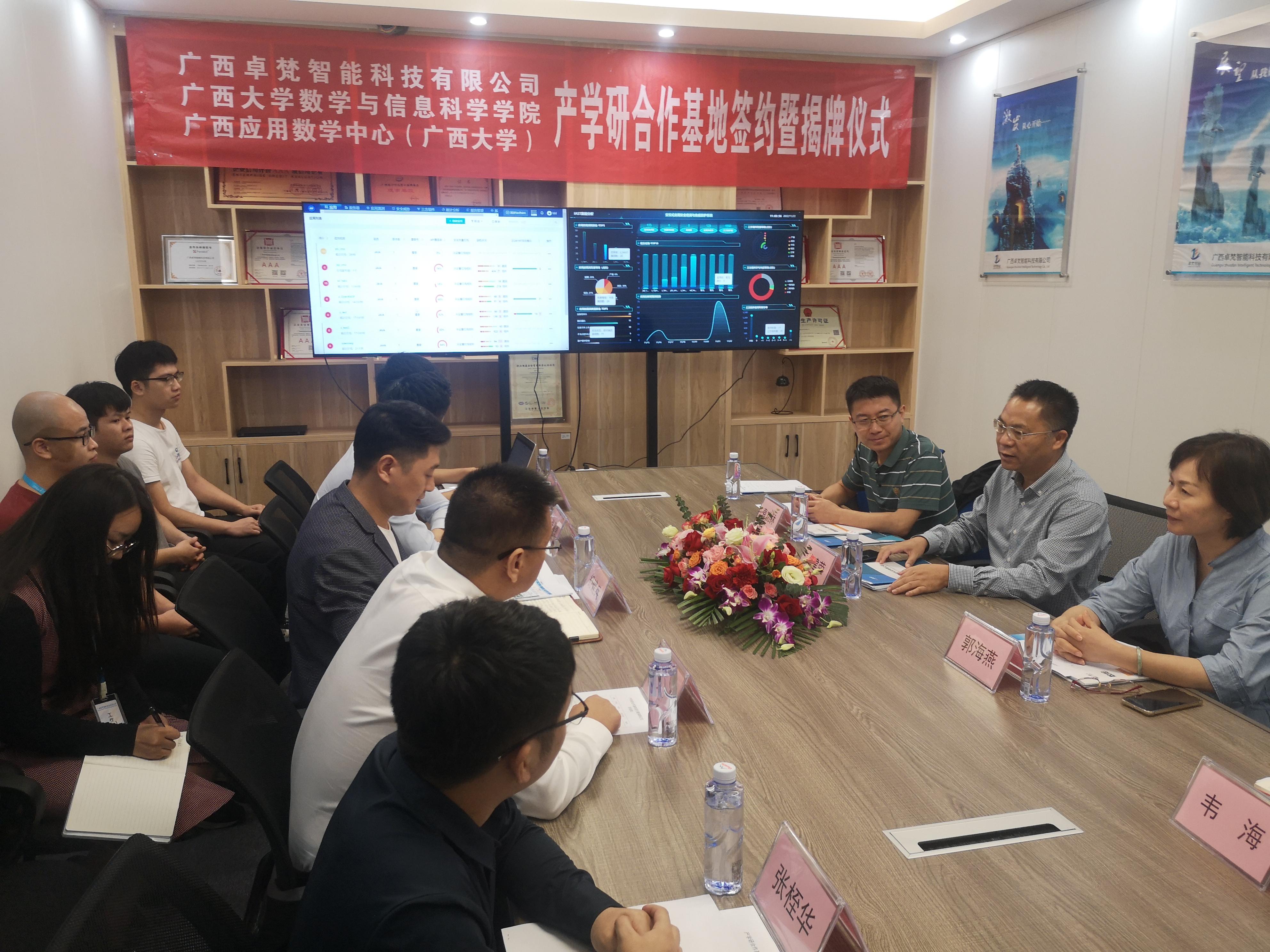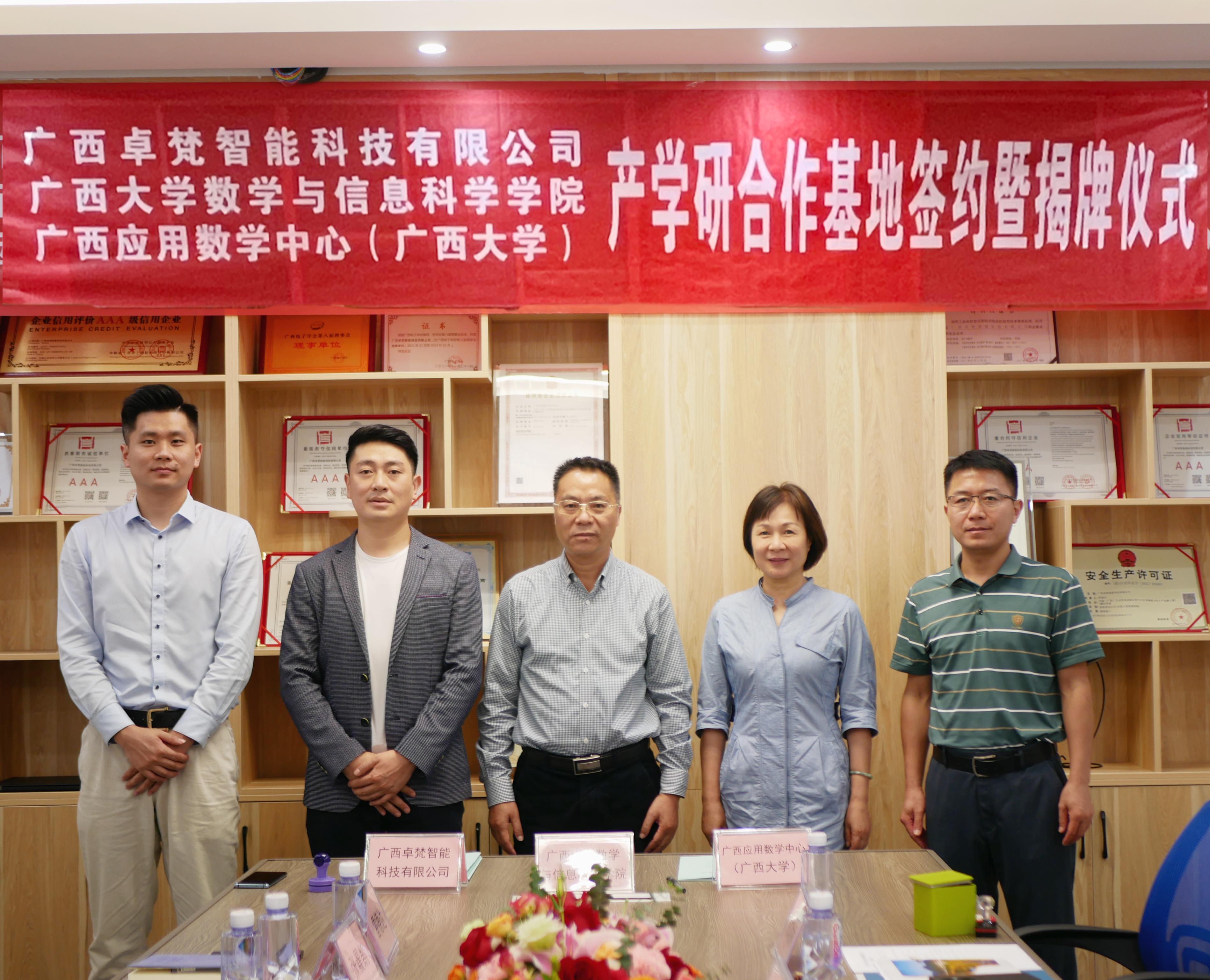 11月12日上午,院党委书记黄建荣带队一行4人前往广西卓梵智能科技有限公司举行产学研合作基地协议签约暨揭牌仪式。院党委副书记郭海燕,副院长、广西应用数学中心(麻豆影视