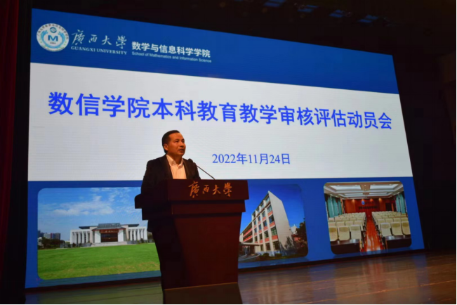 迎评工作,带动全体本科生积极投身到评估工作中,助力学校评估工作顺利完成,11月24日晚,数信学院在大礼堂召开迎接本科教育教学审核评估动员会,院长郭真华做动员讲话,院党委副书记郭海燕主持会议,数信创培191班朱光洁作为学生代表宣读倡议书。全体辅导员,全体本科生参加会议。