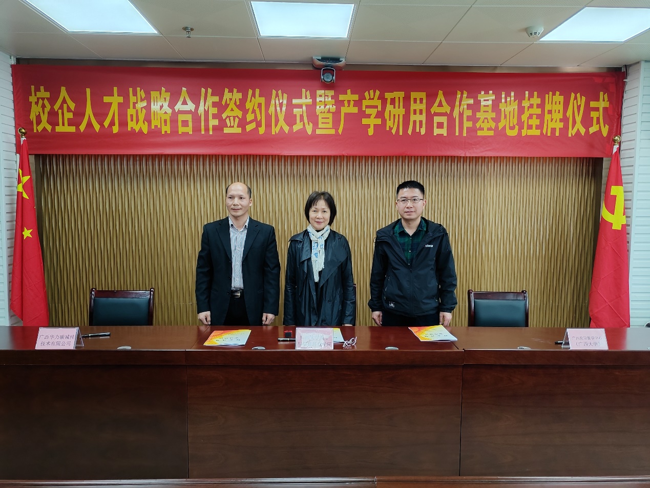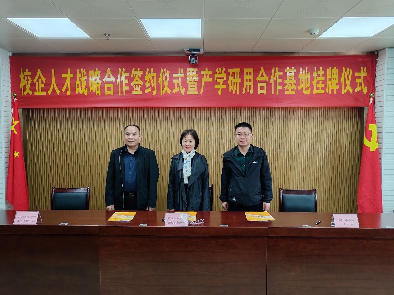 )分别与广西正华潜力实业有限公司、广西华力碳减排技术有限公司举行校企人才战略合作签约仪式暨产学研用合作基地揭牌仪式。院党委副书记郭海燕,副院长、广西应用数学中心(麻豆影视