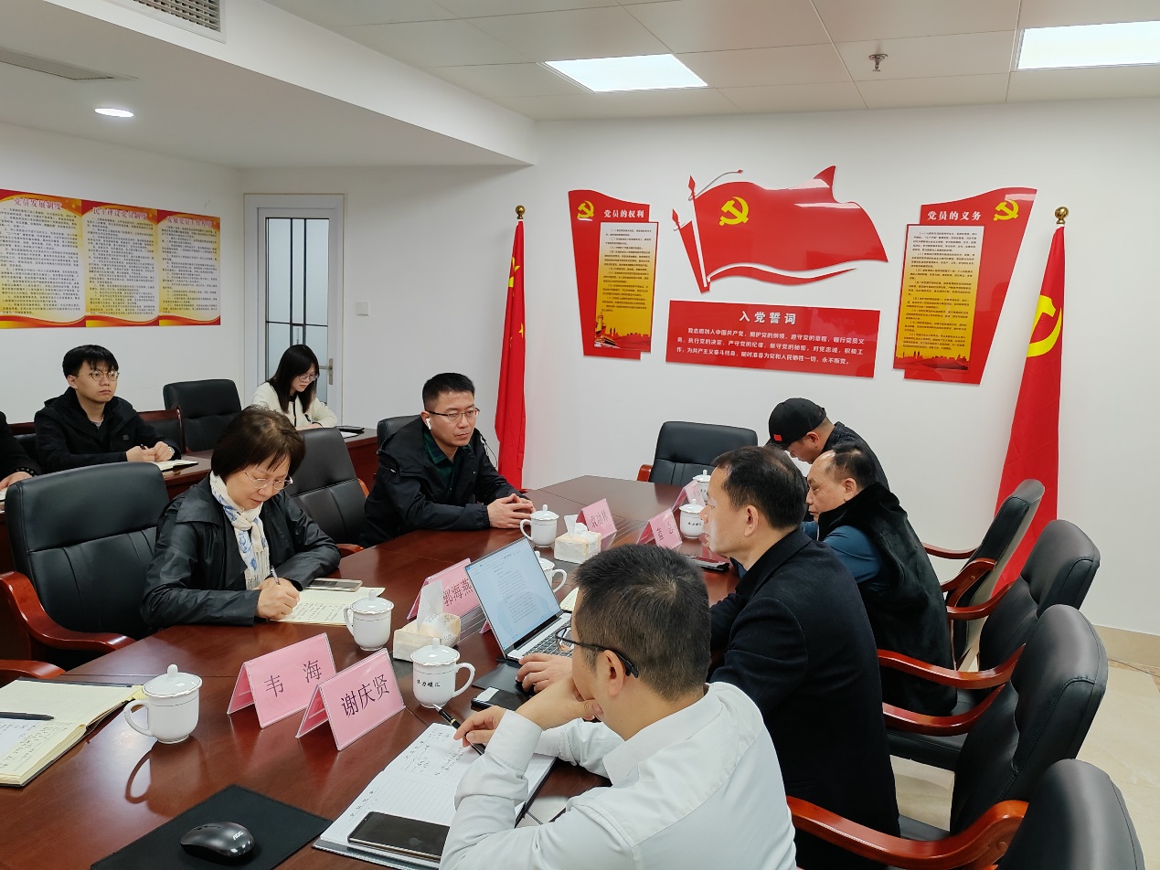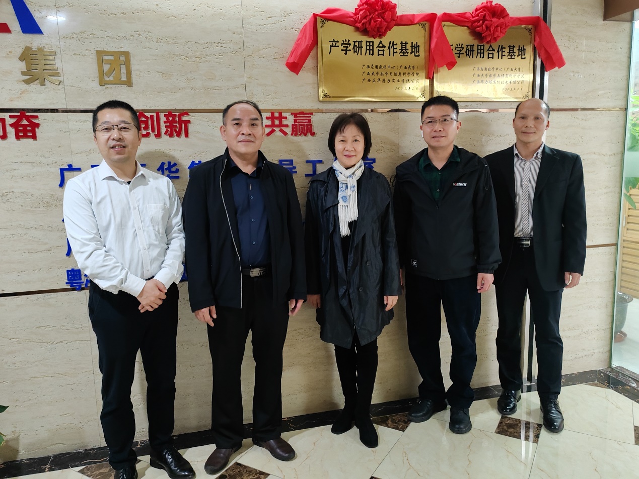 )的成立背景、人员结构、科研实力等方面进行了详细的介绍,表示学院和中心秉承填平广西数学发展的洼地和为广西各地政府企事业单位解决科技难题的初衷,目前发展势头良好,能服务于两家企业的实际需求,两家企业也将会拓展数学学科的应用领域,各方合作前景十分广阔、大有可为。各方还就科技研发、科研成果转化、项目联合申报、课题攻关、学术交流、员工(师资)培训、党支部共建、学生实习就业等方面进行了深入的交流。