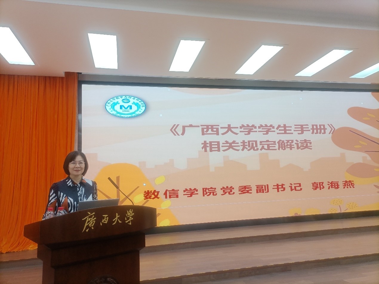 郭海燕副书记重点讲解了学生宿舍管理规定、学生考试违规处理办法、课程考勤制度、校园安全规范等麻豆影视