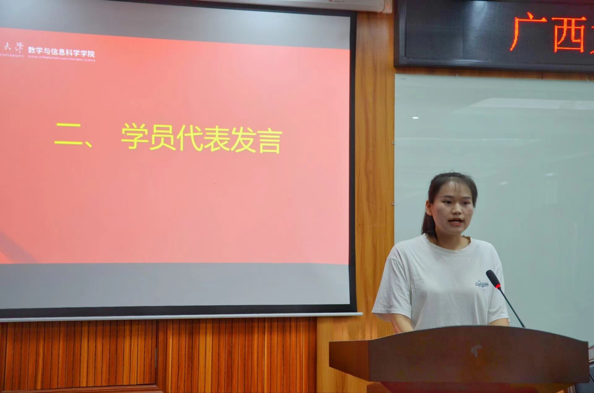 开班式在雄壮的国歌声中拉开帷幕。数学类222班韦梅馨、数理创培211班尹荟杰、2021级硕士研究生吴广德等三位同学分别作为积极分子代表、发展对象代表和预备党员代表发言并表态,表示全体学员要以此次培训为契机,用党的先进理论武装自己的头脑,坚定理想信念,提升政治站位,提高思想认识,高标准、严要求完成培训学习,早日成为一名真正的共产党员。随后,学院专职组织员王支柱老师宣读了培训纪律。