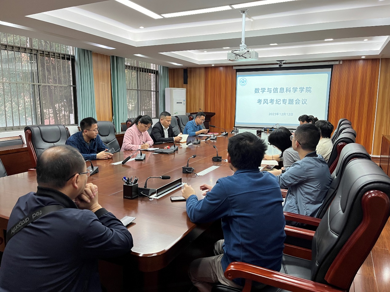 学以载道,诚信为本。为切实做好期末考试工作,进一步强化学风,优化教风,严肃考风,12月12日下午,数信学院院长郭真华主持召开考风考纪专题会议,学院党委副书记唐旭彬、副院长袁功林、副院长唐春明、各系主任、副主任、辅导员、全体班主任、教学秘书及研究生秘书参加会议。