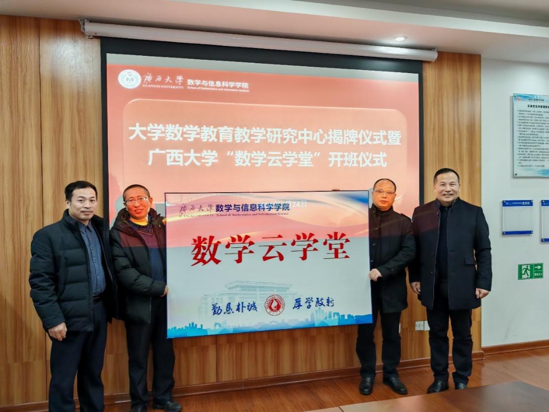 “数学云学堂”开班仪式在学院506会议室举行。学院党委书记覃宪儒、院长郭真华为大学数学教育教学研究中心揭牌,郭真华和特邀专家华中农业大学陈华锋老师为麻豆影视