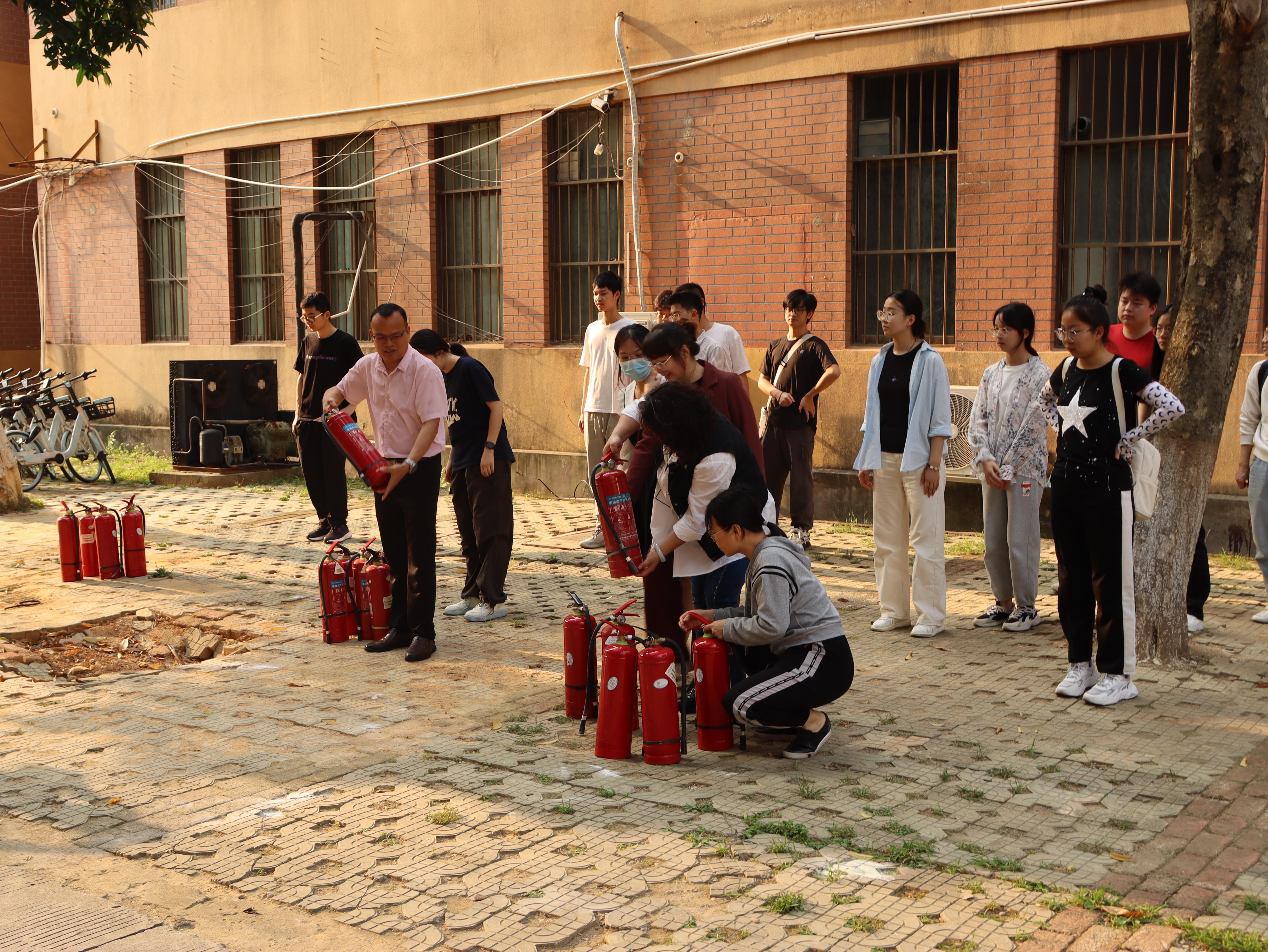 随后,师生积极踊跃使用手提式干粉灭火器进行了灭火实战演练,亲身实践体验灭火器“一提、二看、三摇、四拔、五压”的灭火步骤,现场气氛热烈、效果良好,师生深感受益匪浅。