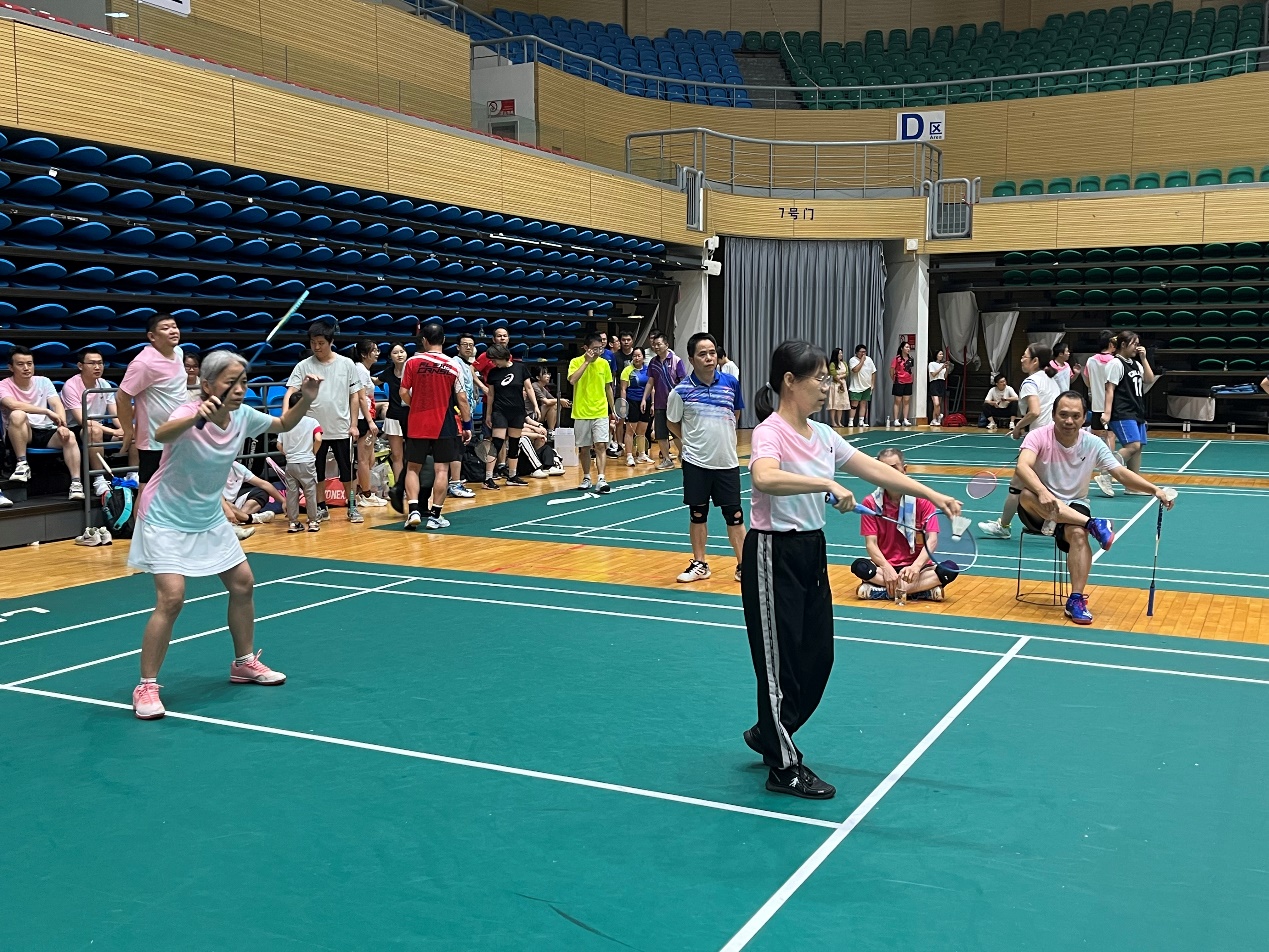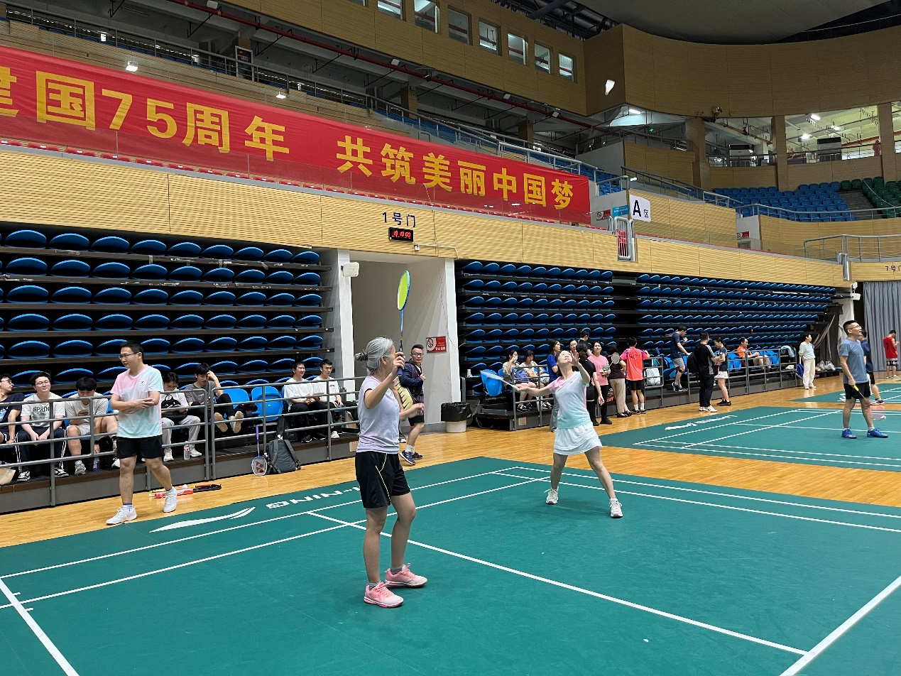 比赛以混合团体赛形式进行,设男双、女双和混双等项目,尽管老师们在年龄、身高等方面存在差异,但丝毫不影响赛场上的出色发挥。女双的联袂出击,男双的鱼跃扑救,混双的珠联璧合,队友们无声的默契,巧妙的配合,给在场观众带来一场场视觉盛宴,场外的学生啦啦队加油叫好此起彼伏。最终学院教职工羽毛球队以小组第一的成绩成功晋级第二阶段的比赛。
