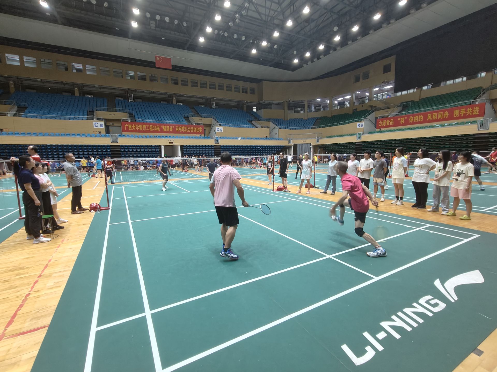 教职工第36届“健康杯”羽毛球混合团体比赛在西体育馆内举行。数信学院分工会精心筹备,积极组织,学院师生上下一心,全情投入比赛。