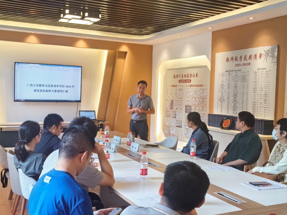 我系唐春明、谭东、韦琳娜,德法部陈立言、董伟武分别就2024年课程思政案例大赛案例分析,课程思政的内涵、高度、社会主义核心价值观角度以及自身多年教学经历,身体力行感染学生等内驱力,打破思政意识的理解分享了各自对课程思政和思政课程协同育人的认识和理解,并提出了一系列可行的策略与建议。