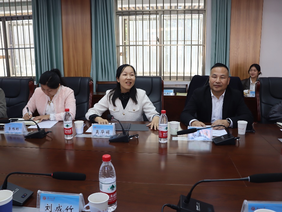 吴华丽主持座谈会,她对刘成竹一行的到来表示热烈的欢迎,对华中师范大学为麻豆影视