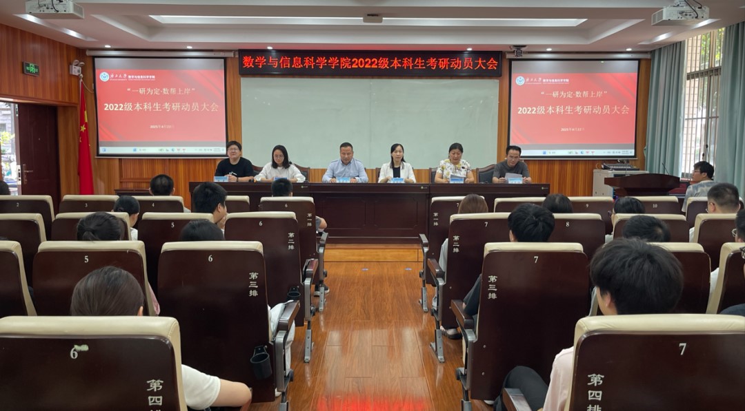 于4月22日下午在学院109报告厅召开2022级本科生考研动员大会。学院党委书记吴华丽、院长郭真华、博士生导师代表、各系正副主任、全体专兼职辅导员、2022级本科生班主任及全体本科生参加动员大会,大会由学院党委副书记唐旭彬主持。
