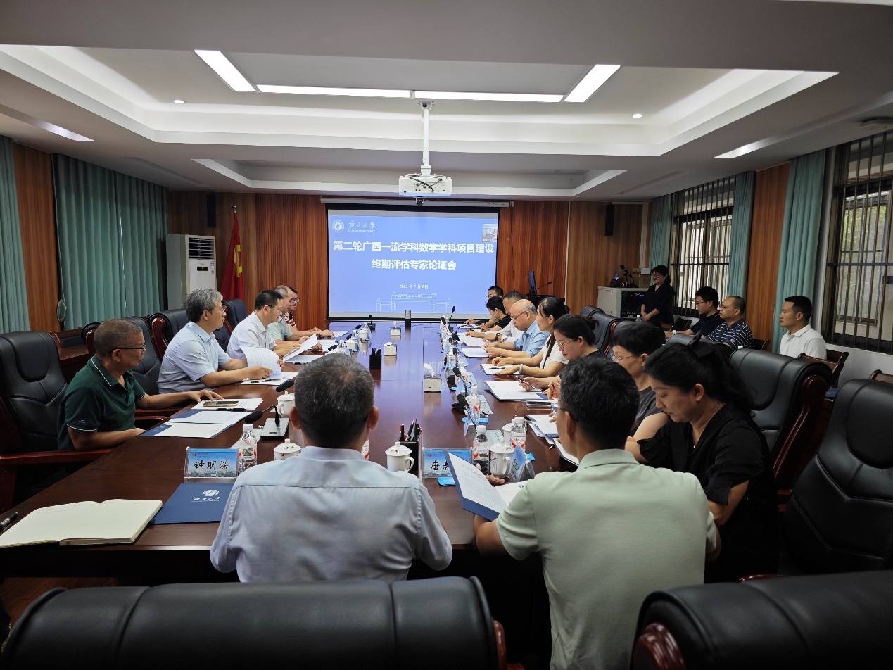 召开第二轮广西一流学科数学学科项目建设终期评估专家论证会。博雅学者、华中师范大学数学与统计学学院邓引斌教授;教育部数学类专业教指委秘书长、北京航空航天大学数学学院韩德仁教授;广西高层次人才、广西民族大学数学科学学院刘振海教授;南宁师范大学党委副书记、校长隆广庆教授;教育部学科评议组专家、厦门大学数学科学学院谭忠教授;教育部数学类专业教指委委员、北部湾大学党委副书记唐高华教授;教育部学科评议组专家、西安交通大学数学与统计学院肖燕妮教授;浙江科技大学喻高航教授;中国数学学会常务理事、教育部学科评议组专家、武汉大学数学与统计学院赵会江教授共9人组成专家评估组对麻豆影视