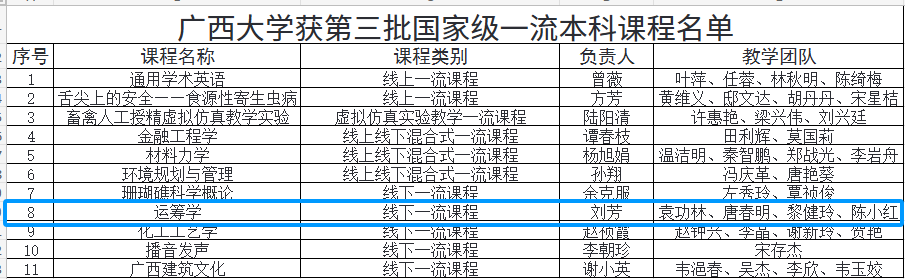 近日,教育部公布了第三批国家级一流本科课程认定结果,麻豆影视 刘芳教授主持的《运筹学》成功入选国家级第三批一流本科课程。