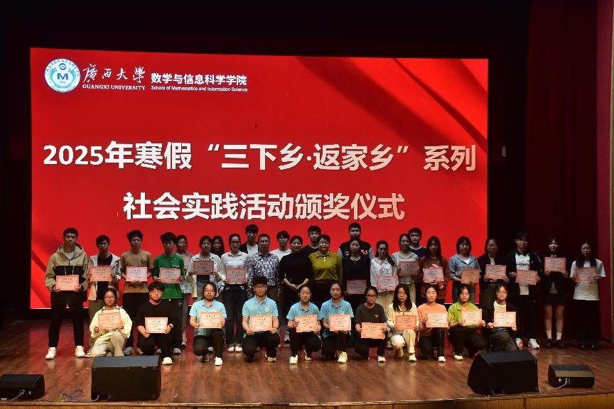 3月4日下午,数信学院在大学生活动中心一楼小剧场举办寒假“三下乡·返家乡”系列社会实践活动颁奖仪式暨分享交流会。学院党委副书记唐旭彬、校团委陈晓江、数信学院全体辅导员、获奖学生及23、24级本科生参加本次活动。