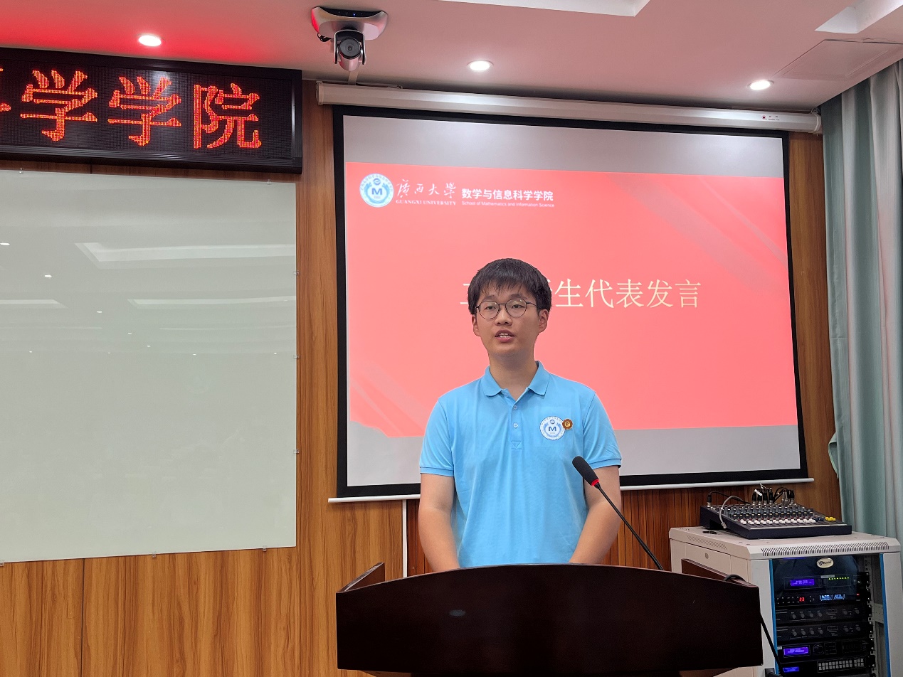 本科四年的学习生活,感谢数信学院给予的人文关怀和各种学习机会,而这也成为了他再次坚定选择数信学院攻读硕士研究生的重要原因。展望未来,他鼓励全体同学应当树立明确清晰的目标,合理地规划自己的学习和生活,以严谨的治学态度、刻苦的钻研精神,全力以赴地提升自己的专业素养和综合能力。同时积极踊跃地参与各种学术活动、文体活动和实践锻炼,德智体美劳全面发展。