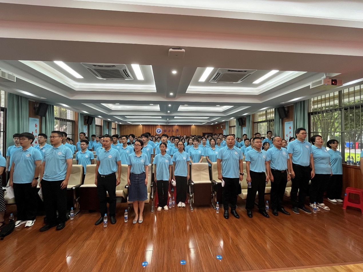 在一楼报告厅举行2024级新生入学欢迎仪式。数信学院院长郭真华、院党委副书记唐旭彬、副院长袁功林、副院长唐春明、副院长石志刚以及系主任、学工组辅导员、新生班主任和210名2024级新生一同参加了会议。入学仪式由数信学院党委副书记唐旭彬主持。