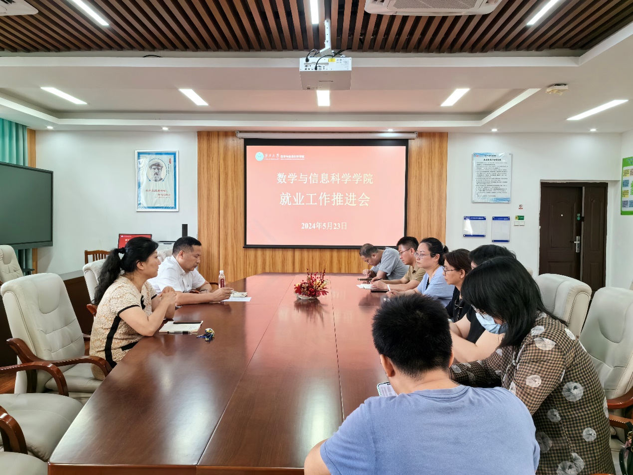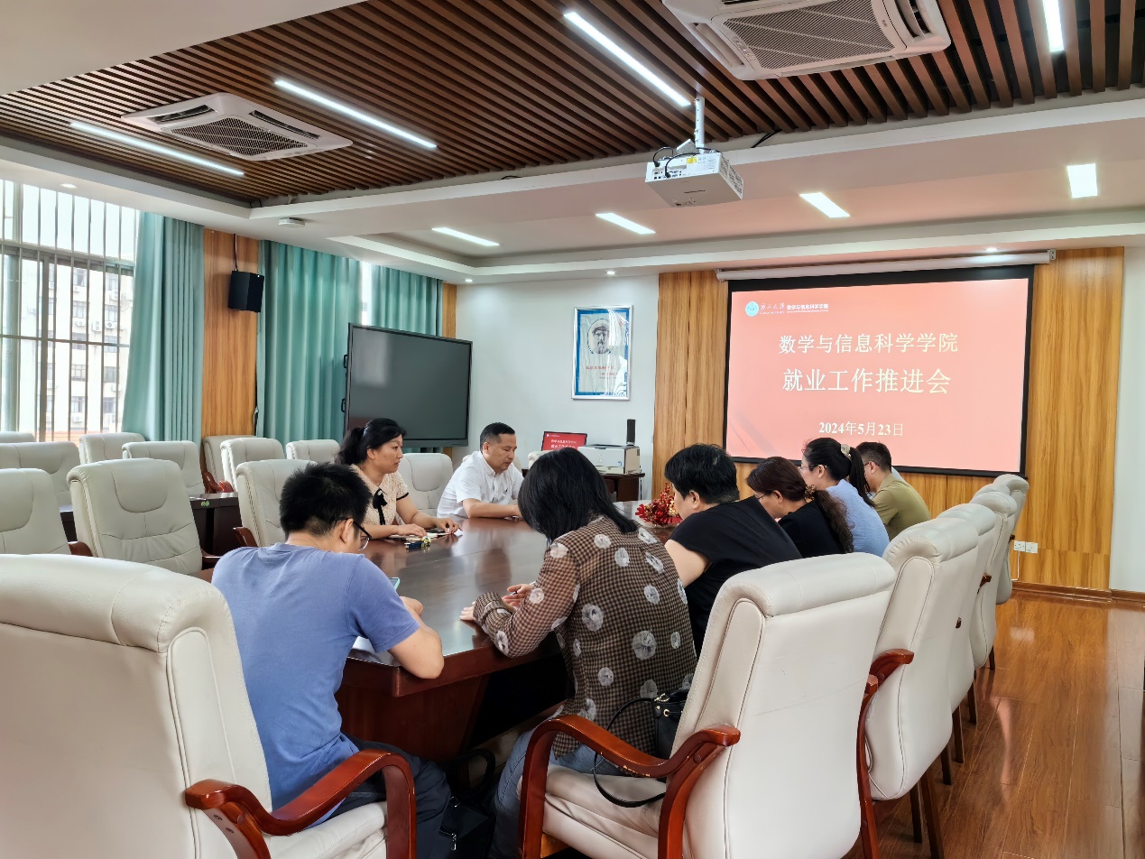 为全面贯彻落实自治区党委、政府以及学校关于做好高校毕业生就业工作的决策部署,全力以赴促进学院2024届毕业生高质量充分就业,5月23日数信学院在506会议室召开2024届毕业生就业工作推进会。院长郭真华、学院领导班子成员、毕业班班主任以及全体辅导员参加会议。会议由学院党委副书记唐旭彬主持。