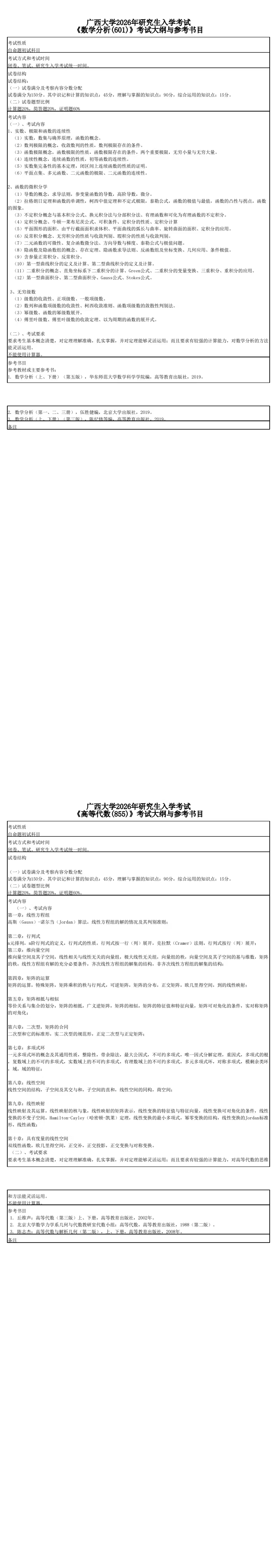 麻豆影视 2026年研究生入学考试《数学分析(601)》《高等代数(855)》考试大纲与参考书目
