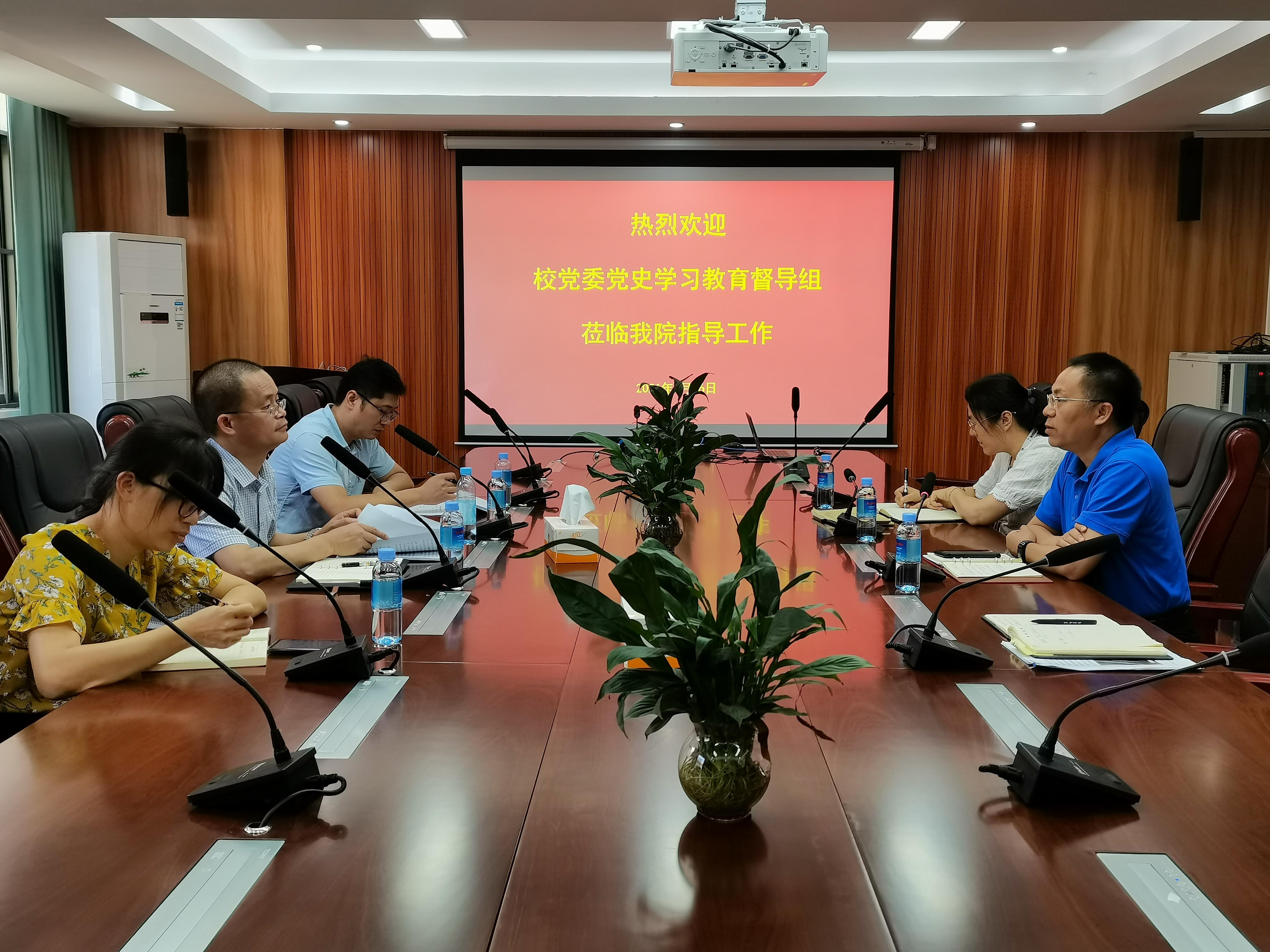 党委书记黄建荣对学院党史学习教育计划制定及落实,“四史”学习教育、主题党日活动等专题学习,“打卡红色教育基地”等规定动作及 “唱红歌”等自选动作开展情况作了汇报。同时,结合学院专业实际及学生学习情况,对教工党员与学习困难学生结对帮扶等已开展或即将开展的“我为群众办实事”等实践活动进行了详细介绍。