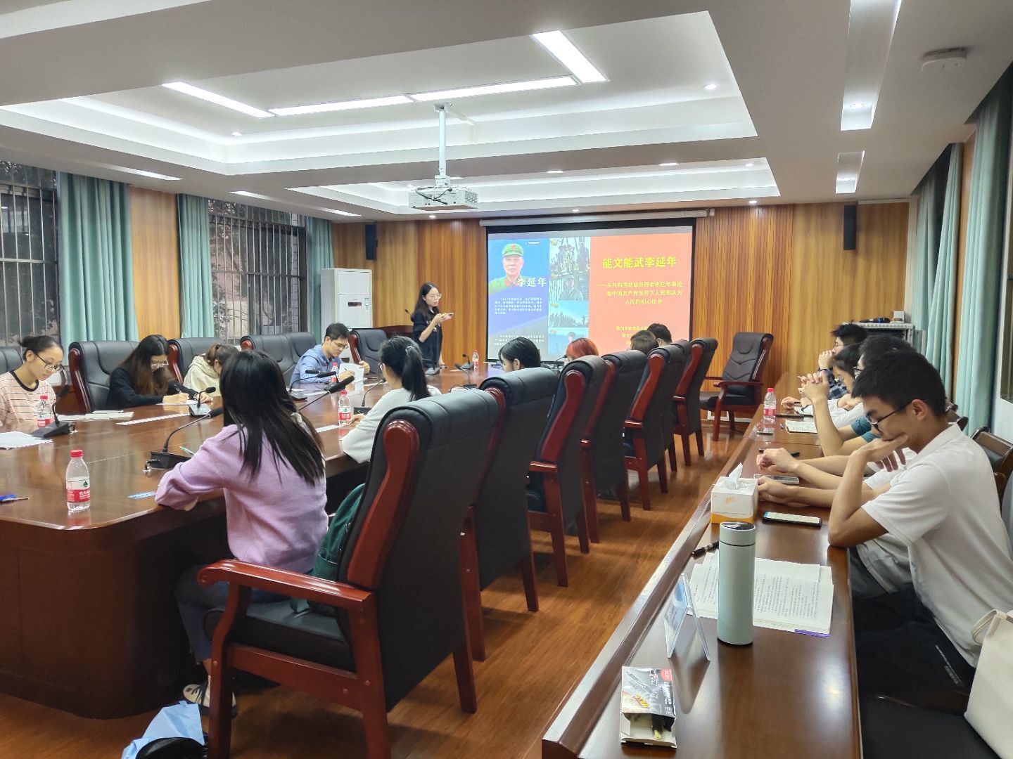 本次党日活动以“能文能武李延年——从共和国勋章获得者李延年事迹看中国共产党领导下中国人民军队为人民的初心使命”为主题。会前,支部要求各位党员自行观看近期热播、以共和国勋章获得者为原型的电视剧《功勋》中的李延年篇,自行学习抗美援朝历史,精心准备发言材料。会上,大家集体观看了电视剧《功勋》《跨过鸭绿江》的部分片段,对共和国勋章获得者李延年带领的连队在抗美援朝战场的可歌可泣的英雄故事谈感想、谈体会、谈收获,共同学习伟大的抗美援朝精神,共同学习中国共产党领导下志愿军战士不畏强权、捍卫和平、保家卫国的强大精神力量。