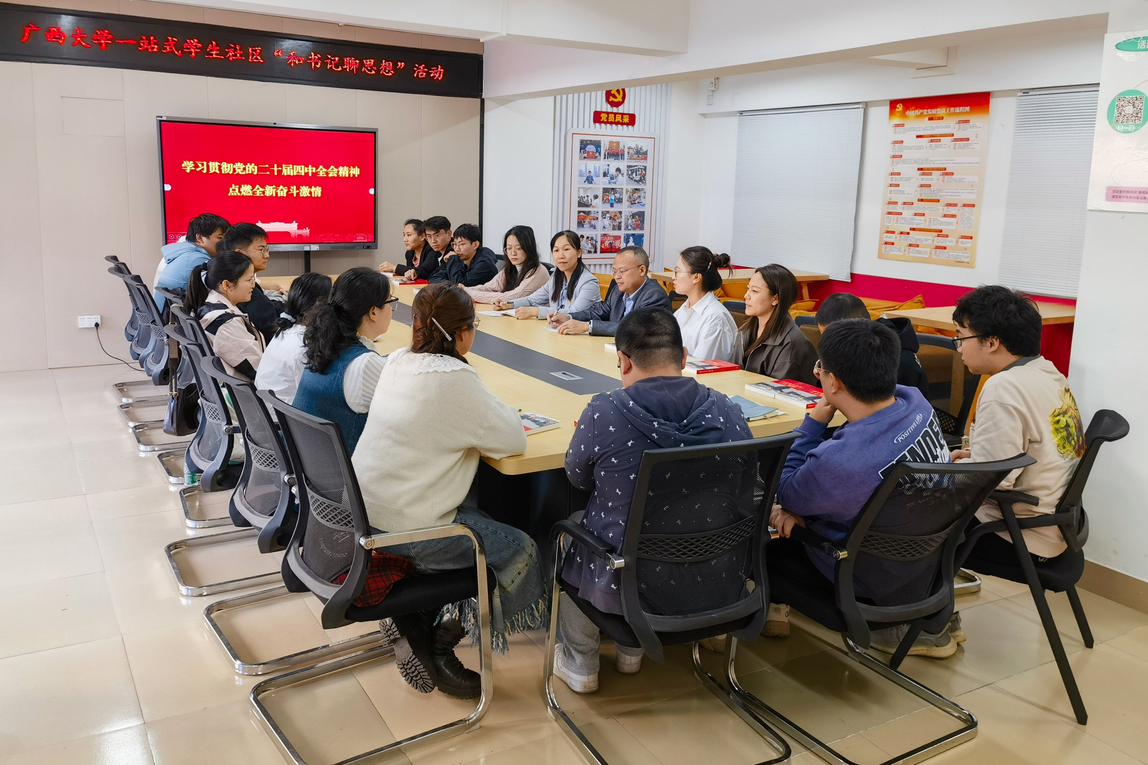 18名博士生代表共同学习党的二十届四中全会精神,并进行座谈交流。院党委副书记、纪委书记石志刚主持座谈会。座谈会前,吴华丽向与会同学一一赠送了《习近平与大学生朋友们》。