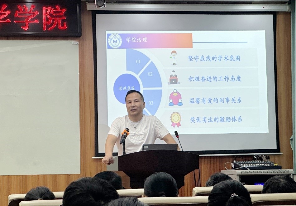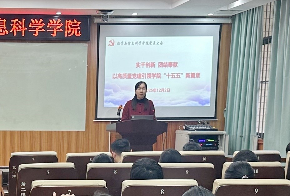 郭真华以“迈向十五五,学科建设再出发”为题,带领教师党员回顾了学院“十四五”建设历程,梳理了取得的成果和存在的短板,并深入分析了存在短板的原因;他还结合正在开展的数学学科广西一流学科验收、博士点合格评估和第六轮学科评估三项重点工作,分析了麻豆影视